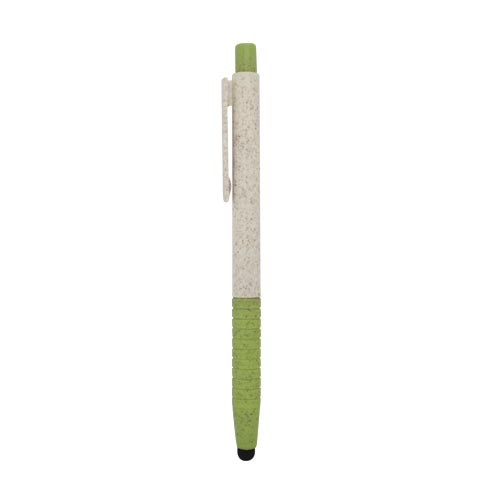 Lápiz eco-plástico 2 colores, aplicaciones touch en punta, pulsador retráctil y clip. Tinta azul.