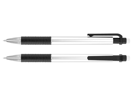 Portaminas "Mechanical" con cuerpo de color metalizado y goma de borrar. Contiene mina de 0.5mm.