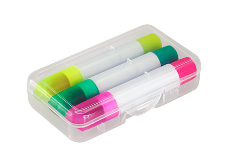 Set de 3 Destacadores de Cera, con dosificador, presentación en Estuche de Plástico transparente. No se secan.