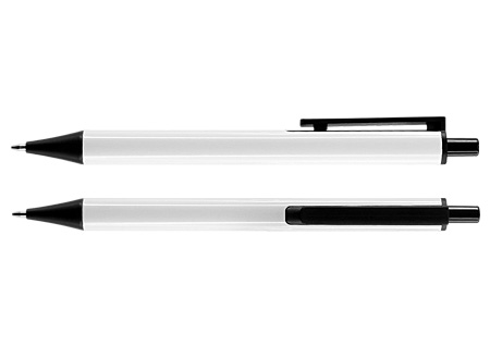 Bolígrafo Metálico blanco "Phantom", con terminales plásticos negros. Diseño simple y moderno. Escritura negra.