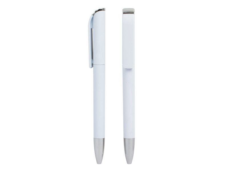Bolígrafo blanco "Angel", con clip ancho plano, especial para imprimir sobre él. Escritura azul.