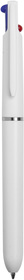 Plástico. Cuerpo color blanco. Con clip y dos botones pulsadores. Anillo metálico color plata. Pasta azul y roja.