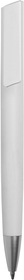 Plástico. Cuerpo blanco mate. Clip pulsador y puntera del mismo color. Pasta azul