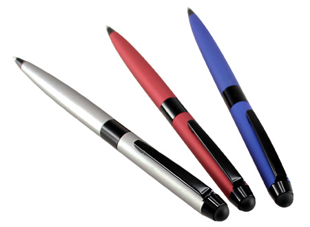 Bolígrafo Metálico modelo "Bauhaus", cuerpo satinado color mate, con goma posterior negra "Touch-Screen" para pantalla táctil. Escritura negra.