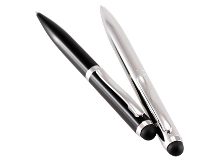 Bolígrafo Metálico modelo "Hotel", con goma posterior negra "Touch-Screen" para pantalla táctil. Escritura negra.