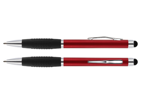 Bolígrafo "Alabama" con cuerpo de color metalizado y puntero touch-screen para pantalla táctil. Escritura azul.