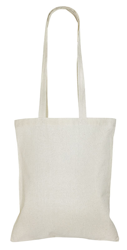 Bolsa 100% Algodón natural de 130g/m2, modelo "India". Manillas de Algodón natural de 80 x 2.5 cm. aprox. c/u.