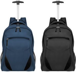 41 x 31 x 14 cm. Capacidad 17 litros. Polyester. Dos compartimentos: el principal con bolsillo rectangular, porta celular, dos porta bolígrafo y bolsillo de red con cierre; segundo compartimento con cierre y porta laptop que cierra con banda elástica de velcro. La espalda es acolchonada y con red que permite la aireación de la espalda. Correas acolchonadas y regulables. Manillas acolchonada en la parte superior de la mochila. Cierres con herrajes de calidad.