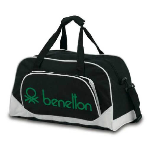 Bolso multiusos en resistente poliéster 600D de desenfadado diseño bicolor Negro, con ribetes de refuerzo y base en color blanco. Compartimento principal y bolsillo exterior con cierre de cremallera a juego. Con resistentes asas de nylon a juego con cierre de velcro y cinta bandolera ajustable de doble cierre de mosquetón. De Importación otros colores.
