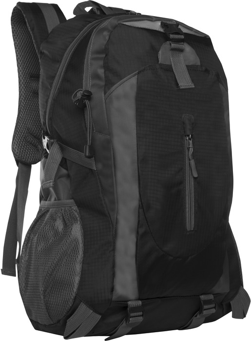 43 x 30 x 16 cm. Polyester 600D. Capacidad 20 litros. Mochila con dos compartimentos, el principal acolchonado. Dos bolsillos exteriores, uno con cierre y el segundo cierre con hebilla y detalle de material reflectante. En los laterales dos bolsillos de red y elásticos regulables para sostener accesorios. En la parte inferior dos tiras regulables que permite llevar diferentes objetos. Correas acolchonadas con red que permite la ventilación y también contiene una cinta ajustable para pectorales.