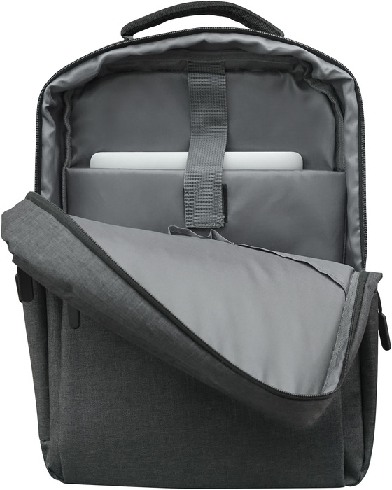 29 x 41 x 12 cm. Capacidad 14 litros. Políester 300D. En el interior un compartimento Porta notebook, dos bolsillos organizadpores y dos porta boligrafos. En el exterior un bolsillo frontal con cierre y otro de costado también con cierre. Correas regulables y acojinadas. Los cierres cuentan con tirantes engomados.