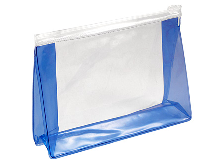 Cosmetiquero de PVC clear con detalle de color en el fuelle.