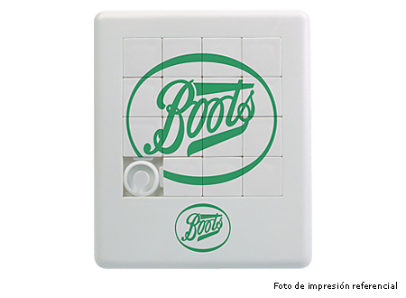 Mini-puzzle plástico. Permite impresión sobre las piezas cuadradas y el objetivo es desordenarlas para luego ordenarlas y así formar el logo o figura impresa.