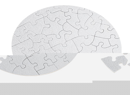 Puzzle Rompecabezas circular de 41 piezas, en cartón sandwich 1.2mm con cobertura aterciopelada para Sublimación. Presentación en bolsa de Polipropileno transparente.