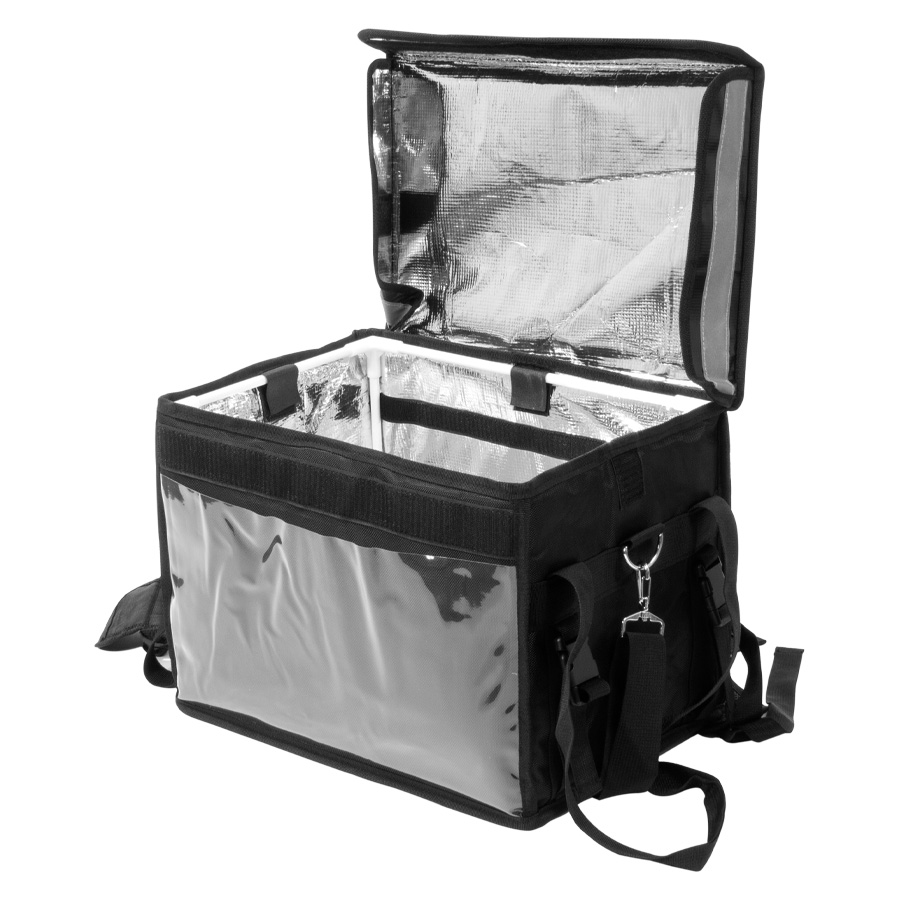 El más completo bolso-mochila para Delivery con capacidad de 31 litros. Interior aislante térmico y esqueleto plástico para mantener la estructura del bolso. Incluye bandejas para división interior, espuma sólida para el transporte de 4 latas, vasos o botellas, y bandas reflectantes para visibilidad nocturna. Puedes transportarlo tanto de mochila como en la parrilla trasera de tu moto o bicicleta!!
