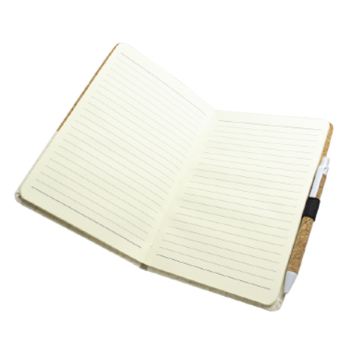 Libreta ecológica corcho, con tela, hojas lineadas incluye lápiz.
