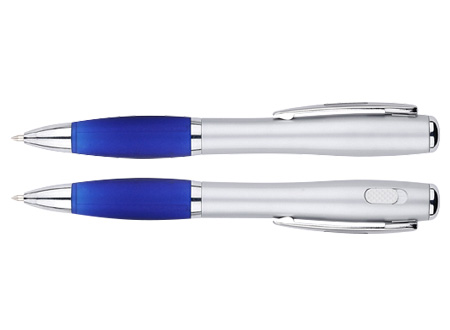 Bolígrafo plástico con linterna LED. Escritura Azul.