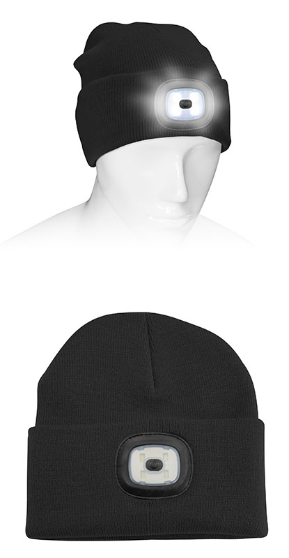 Gorro de Lana con linterna LED, 3 niveles de luz: Estroboscópica, Luz estándar, Luz potente