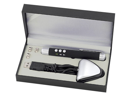 Presentador Datashow / Powerpoint con Puntero Láser y Conexión USB. Funciones de avance y retroceso. Presentación en elegante estuche de regalo de color negro.