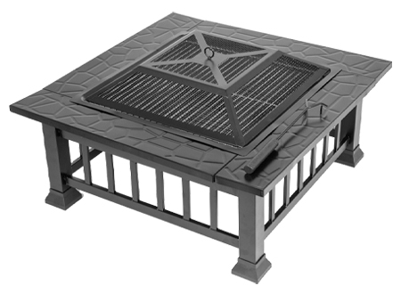 Brasero / Parrilla para Carbón o Leña, de Acero negro, modelo "Luxor". Altura para cocinar: 31cm. Rejilla cromada para cocinar: 51 x 51 x 4mm. Rejilla para carbón: 34 x 34cm x 3.5mm. Tapa con rejilla: 52 x 52 x 8.5cm. Bowl para fuego: 57 x 57 x 11.5cm. Patas: 7 x 7 x29.5cm. Incluye Manual instructivo de armado en español.