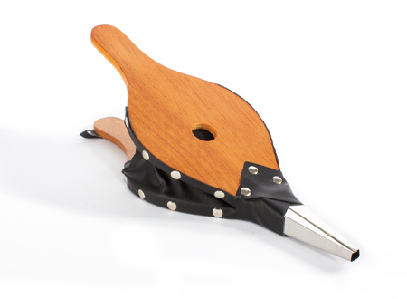 Soplador pequeño de aire tipo Acordeón, para chimemeas y parrillas. Superficie MDF, reforzado con cuero y tachas. Toma de aire posterior. Amplia superficie para logo.