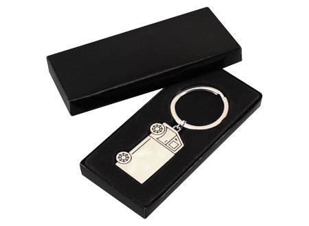 Llavero Metálico modelo "Truck", con forma de camión. Presentación en estuche laminado negro con cuna aterciopelada.