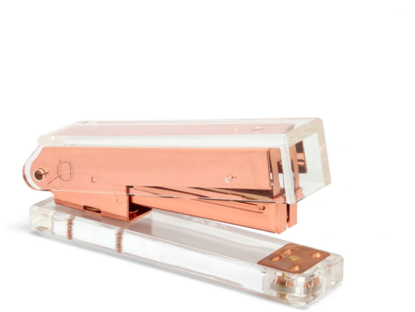 Engrapadora de escritorio que combina diseño y funcionalidad para el diÌa a diÌa. Acrílico y metal. 12,8 x 6 x 3,1 cm.
