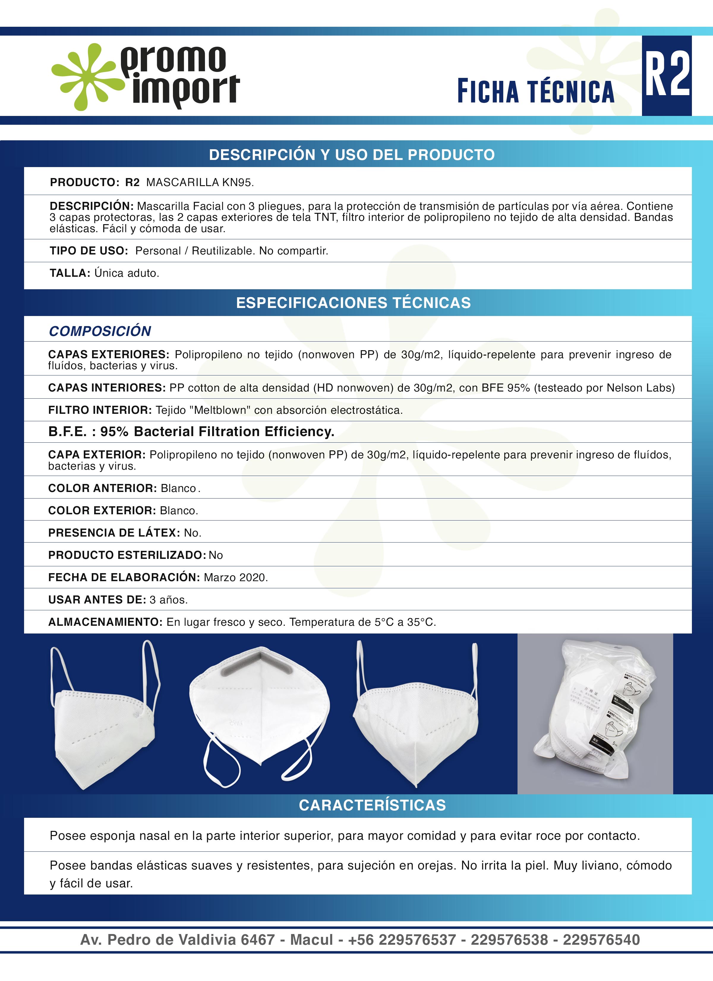 Mascarilla Facial KN95, con 5 capas protectoras, para la protección de transmisión de partículas por vía aérea. Contiene filtro interior "Meltblown nonwoven". Bandas elásticas para sujeción a las orejas. Fácil y cómoda de usar. B.F.E. >95%. El valor publicado es unitario, cada caja cerrada contiene 10 unidades.