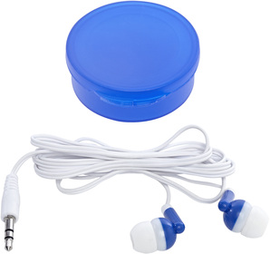 Ø 5 cm. Plástico. Audífonos en estuche circular con auriculares de 117 cm aprox