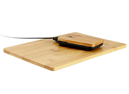 Set USB Mouse óptico + Pad 100% de madera de Bamboo. Incluye cable y conector USB. Serigrafía, Grabado Láser.