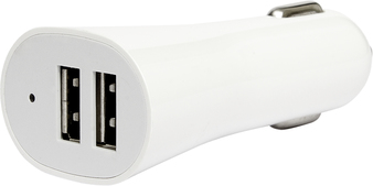 8 x 3 cm. Plástico. Cargador USB para auto con dos entradas USB. Luz de encendido.